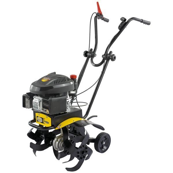 Rotavátor má jednoduchou, ale uživatelsky přívětivou konstrukci a ergonomický design.Nastavitelná rukojeť zajišťuje optimální pracovní polohy a umožňuje snížit nárok na prostor během skladování a přepravy. Jedná se o velmi vyvážený stroj, takže má tichý chod a je vybaven kvalitním a silným motorem Vhodný pro menší zahrady.Rychlost nožů je 91.