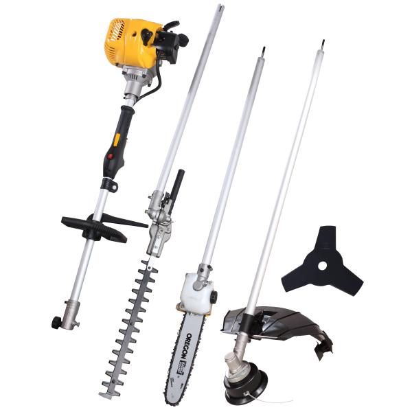 Představujeme moderní farmářskou multifunkci - Texas BCU33M. Jedná se o sestavu 4 v 1, tedy vyžínače, křovinořezu, vyvětvovací pily, plotostřihu. Základ tvoří motorová jednotka, osazená spolehlivým, silným vysokootáčkovým úsporným dvoutaktním motorem se dvěma pístními kroužky Texas Powerline. Motor splňuje emisní normu EURO 2S a je vybaven profesionálním startovacím zařízením Elastostart. Výkon motorů je 0,9 kW. Pohon od motoru je řešen půlenou hřídelí v trubce. Jednotka je vybavena odstředivou spojkou s kvalitní antivibrací.- Úchop motorové jednotky D ručkou spolu s měkkou bandáží na trubce