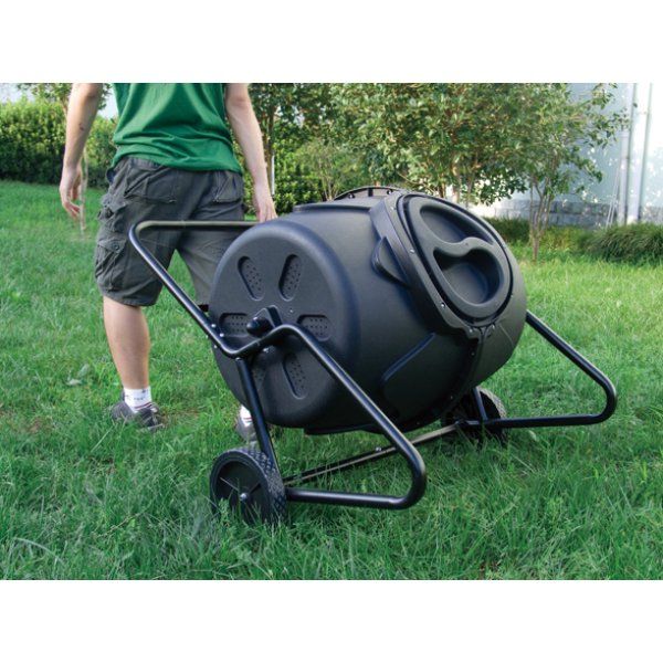 To tromlekomposter stojí stativ, který umožňuje procházet kolem Kompostér. Který usnadňuje pro vás mix odpadu a kompostování podporuje. Kompost je černá barva stoupá sluneční teplo, které podporuje i kompostování.Kromě toho, Drum Kompostér s koly, takže je snadné se táhnout po zahradě. Takže můžete mít tam, kde právě pracují, a házet zahradního odpadu přímo v něm.